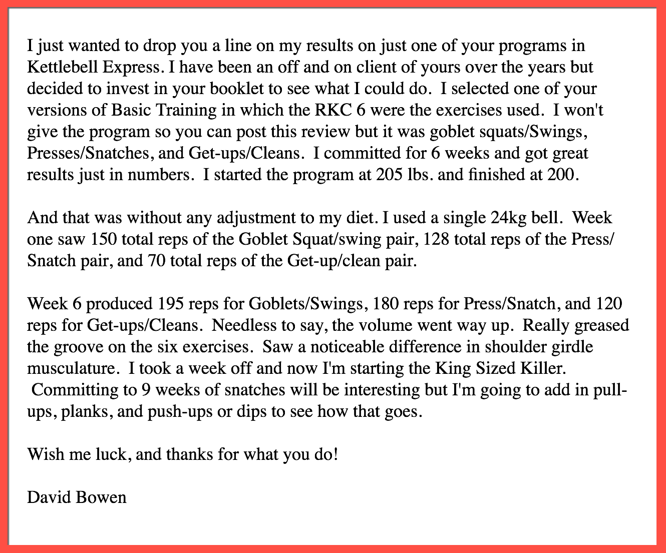 "...Your Kettlebell Express Product Is Amazing."
