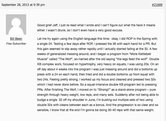 Like my good friend Mark Reifkind, StrongFirst Master Instructor, former USA Powerlifting Women's Team Coach, and former college gymnast says =